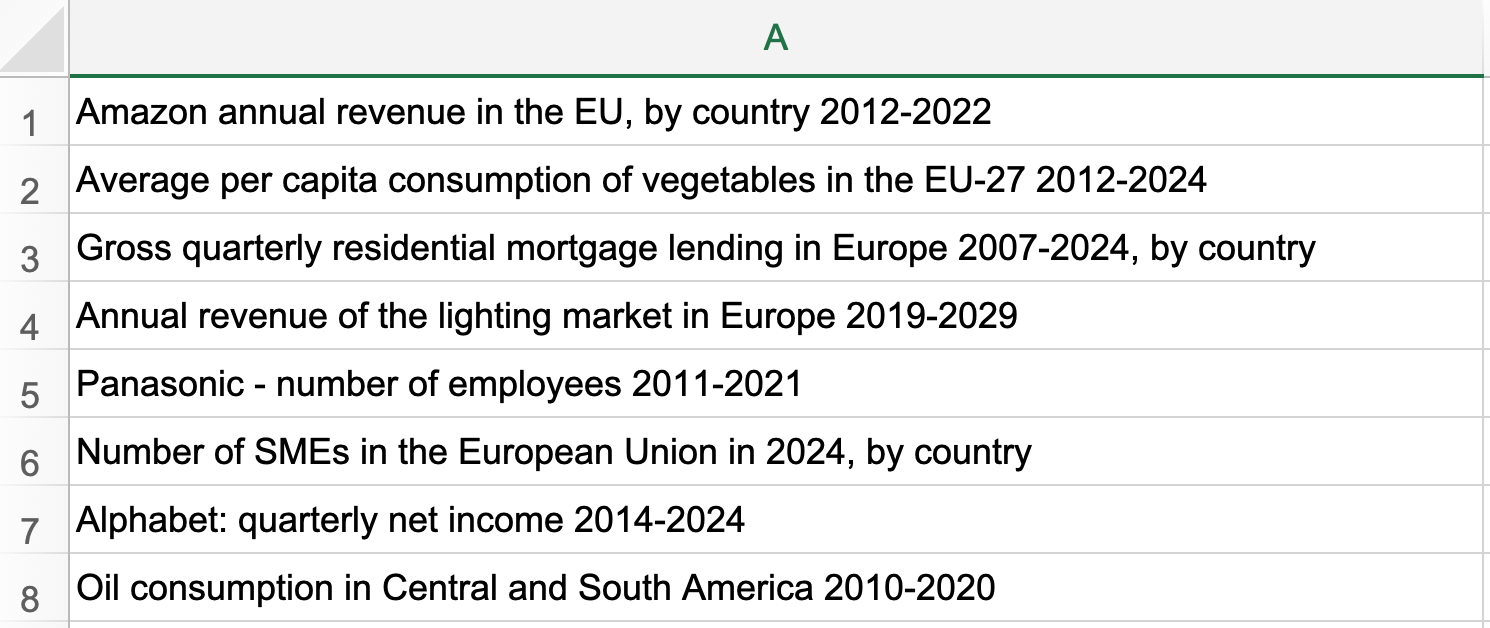 A few days ago I thought I had just an ideal task for an AI bot. I'm working on a personal project collecting references to various statistical research across multiple industries, as a result of which I have built a spreadsheet of tens of thousands of entries listing documents from the past few years.