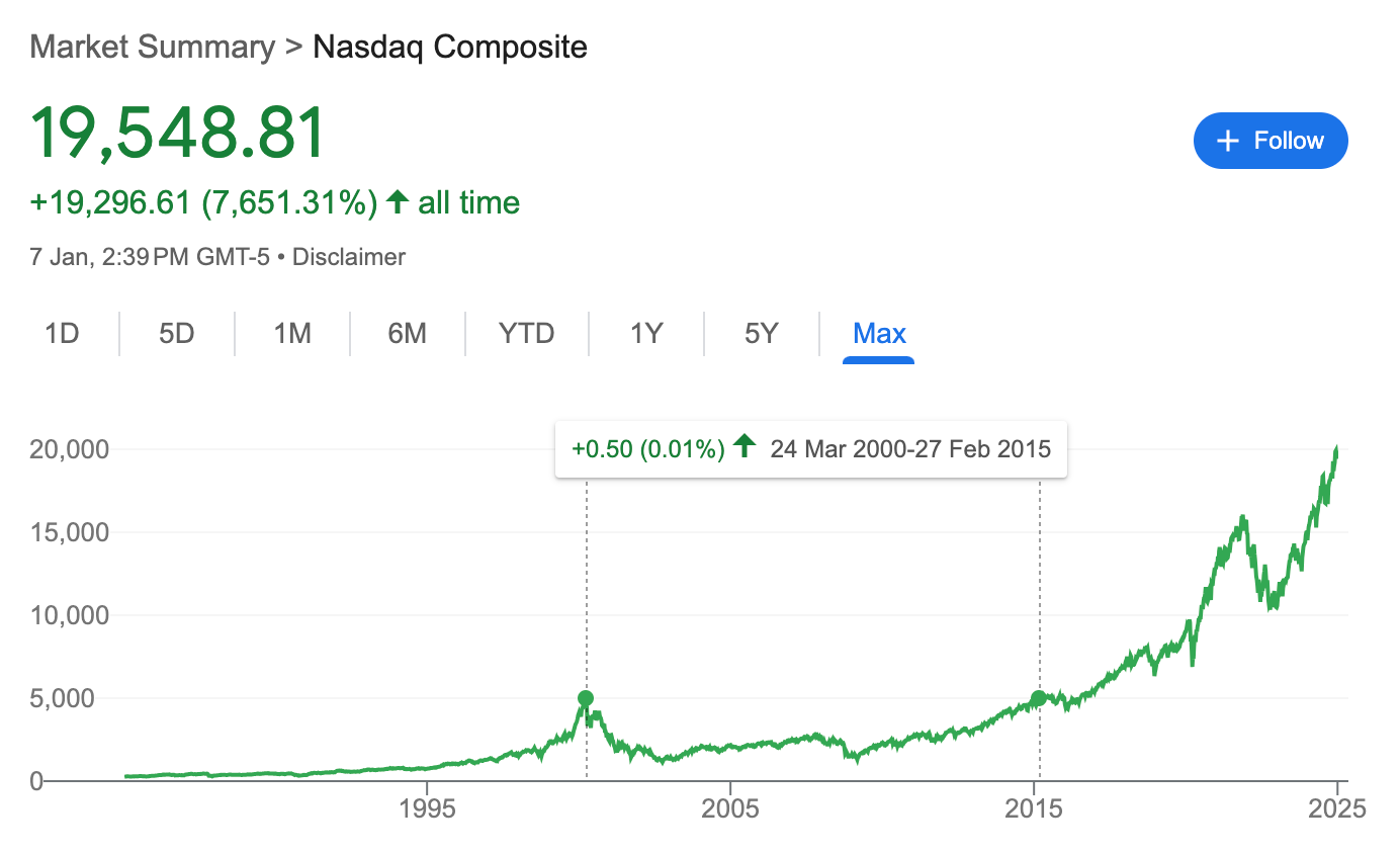 After tech stocks cratered in 2000 it took Nasdaq index FIFTEEN long years to rise above 5000 points again. This is despite the rise of Google and Youtube, explosion of social media or the smartphone revolution.