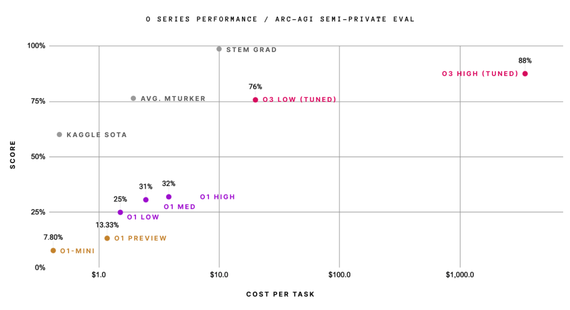 Although relatively expensive to run, o3 has jumped considerably over past models, after o1 already made fairly impressive strides, on ARC-AGI-1 Artificial General Intelligence benchmark, being the first model to, technically, earn a passing score.